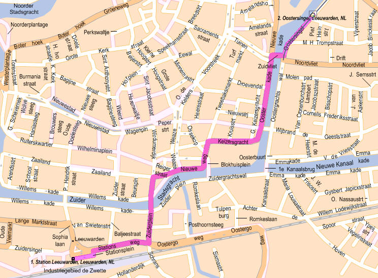 Lopend vanaf het station is ook mogelijk zie de paarse route op de kaart.
